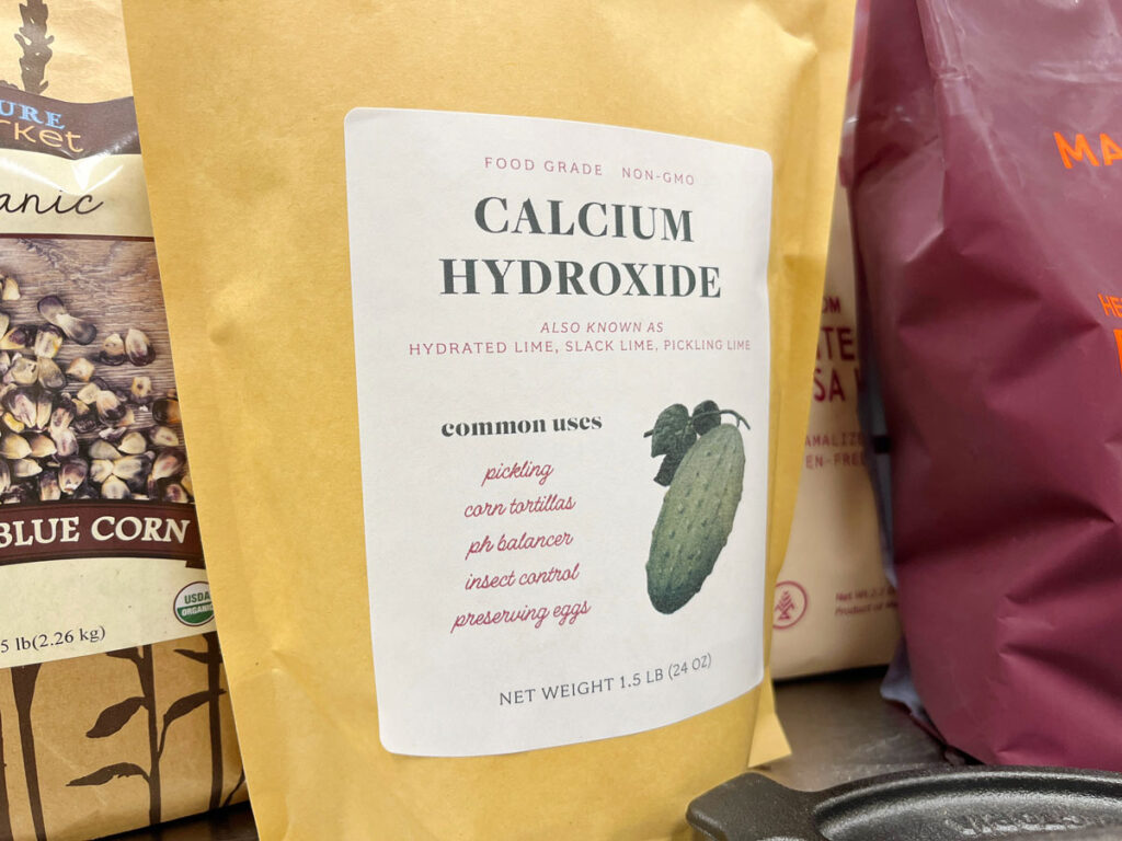 Instead, take the whole dried corn and nixtamalize it by soaking it in calcium hydroxide, which is also called pickling lime. That’s the “lime” you see listed on a package of corn masa.