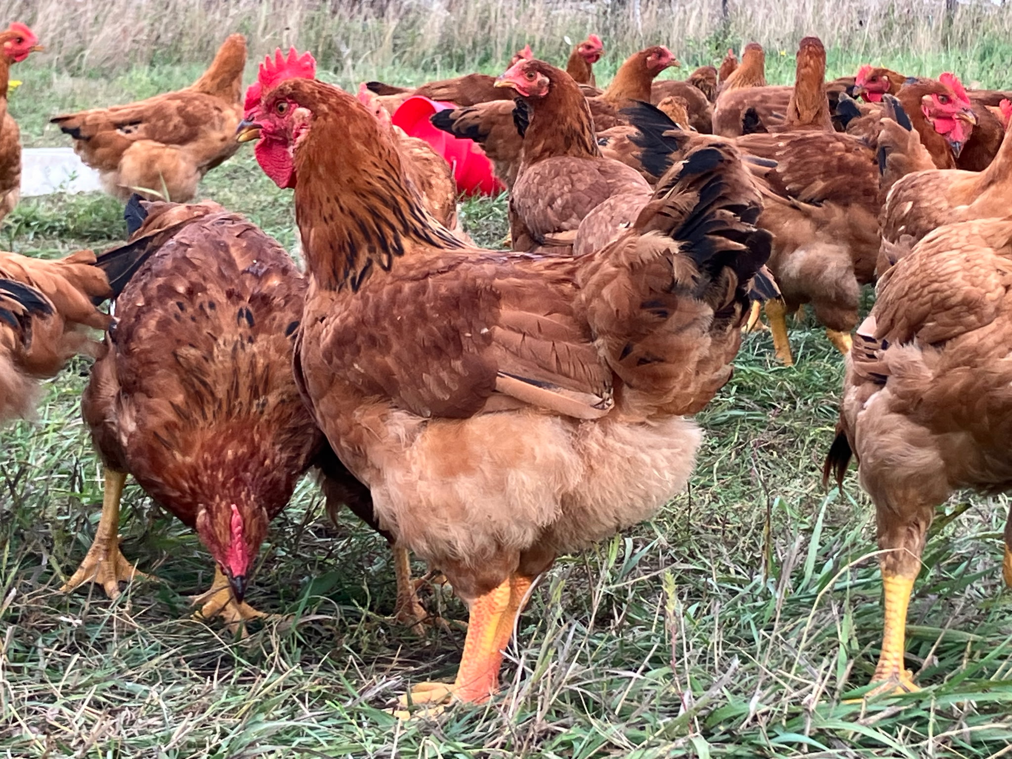 Dakota Reds are for customers that want a flavorful meat but are not in a hurry. These will have more dark meat than our Cornish or Dakota White, and have the same genetics as a Freedom Ranger. Dakota Reds are straight-run only; you will receive a mixture of hens and roosters.