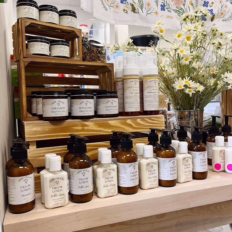 - Hope & Health whipped tallow balms (scented with essential oils)